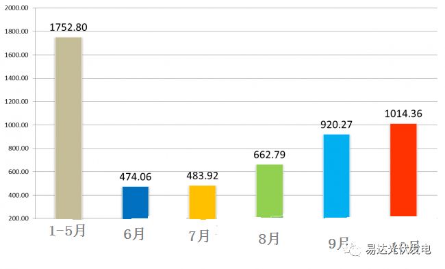 在既保证补贴退坡又确保户用光伏市场平稳发展的大前提下,大家主要关注的关键点无非是在补贴规模和补贴强度两个方面。如前文所述,2019年户用光伏市场5.3GW的新增装机以及0.18元/度的度电补贴所需要的补贴约为9.55亿元(按1000小时计),在装机量上超出了年初设定的目标1.8GW。6-10月平均每月新增装机约为711MW,参考今年的情况,考虑到缓冲期,以及避免出现“抢装现象”,笔者认为2020年的补贴规模设定在7GW能够满足户用市场的平稳发展。