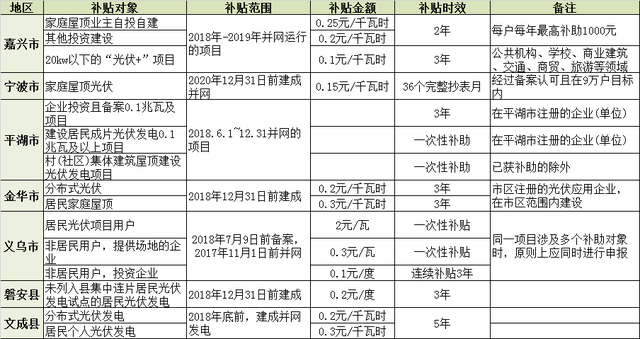 补贴对象及金额:建筑光伏一体化项目,2018年9月17日-2020年12月31日的一次性补贴0.2元/瓦;对于新建建筑同步设计、施工、验收使用的,一次性补贴0.3元/瓦;光伏储能系统应用,自项目投运次月-2020年12月31日补贴1元/千瓦时。