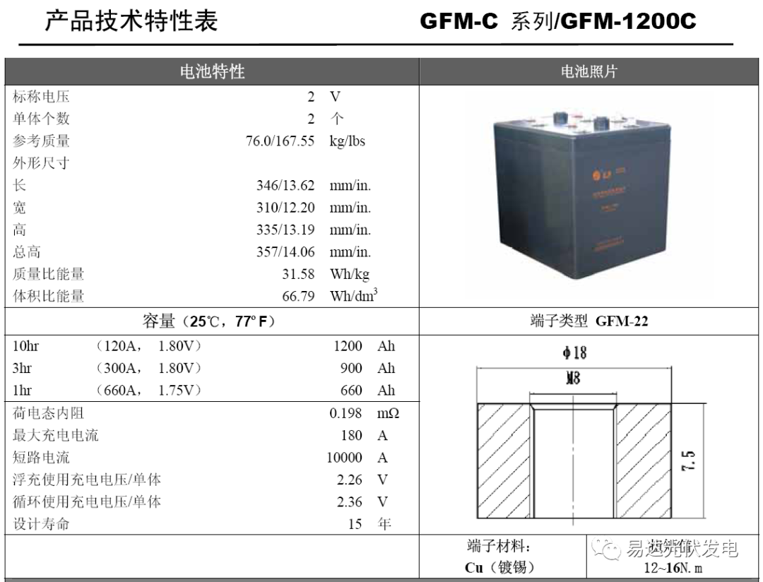 4)蓄电池组: 将太阳电池产生的电能贮存起来,当光照不足负载需求大于太阳电池所发的电量或晚上用电时,将贮存的电能释放以满足负载的能量需求,它是整个系统的贮能部件。本系统蓄电池组采用2V/800Ah共计315块组合而成。采用免维护铅酸蓄电池,具有效率高、使用方便、免维护、自放电小、寿命长等特点。 产品特点: 采用高品质的AGM隔板、无锑多元铅钙特种合金; 独特的极群结构和工艺设计使电池具有较长的服务寿命; 采用气体再化合技术,使用期间无需加水维护; 高纯度原材料,确保自放电率极小,平均每月≤3%(25℃); 电池槽采用高强度ABS(可选用阻燃级ABS); 适用工作温度范围:-15℃~45℃;推荐使用温度:25±5℃;